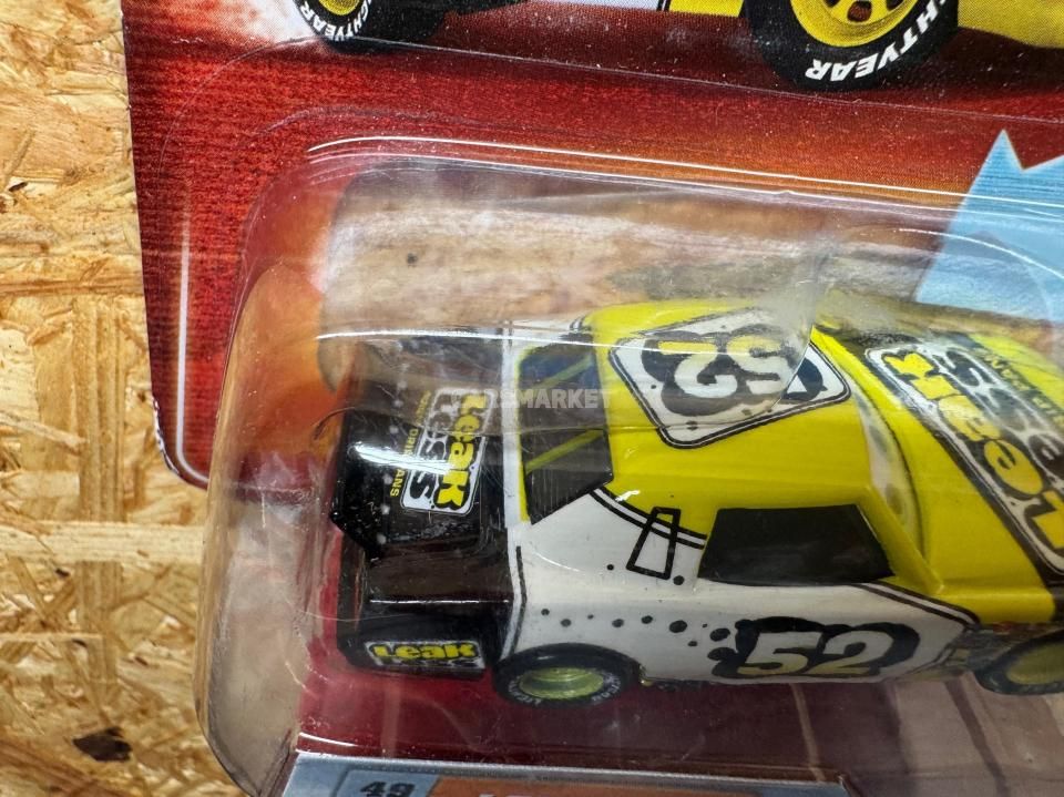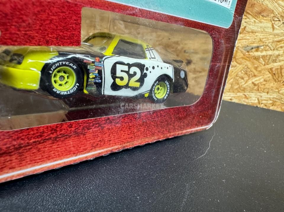 黄色と黒のカラーリングで、ピストンカップの多重クラッシュで、逆さまになり、天井同士をくっつけていたシーンのレースカー。