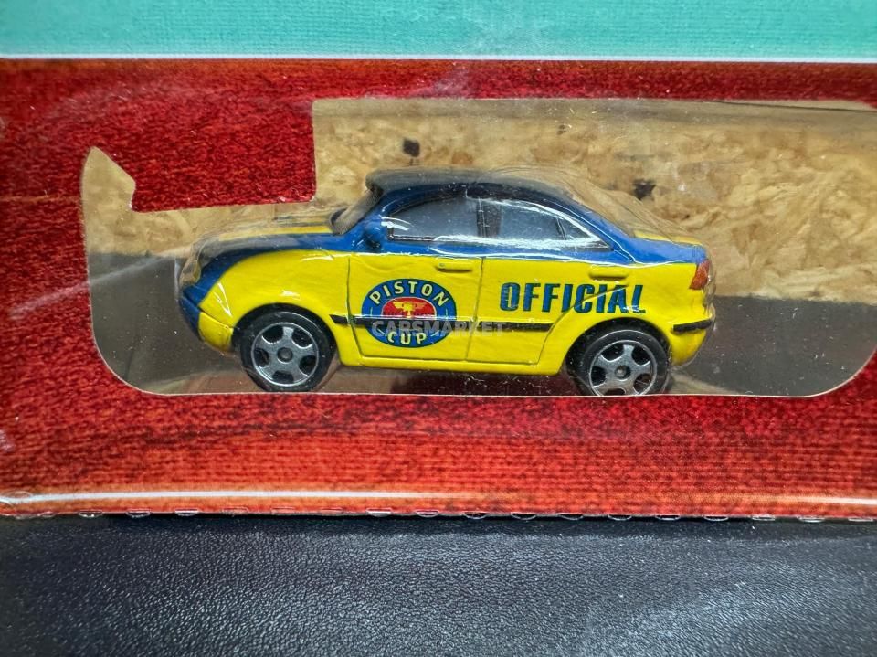 ピストンカップのロゴが入っていて黄色と青のスタッフ車両のカラーが特徴的な一台です。