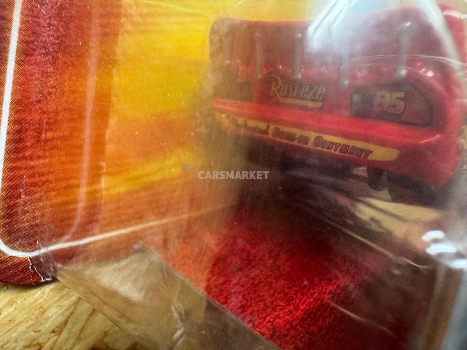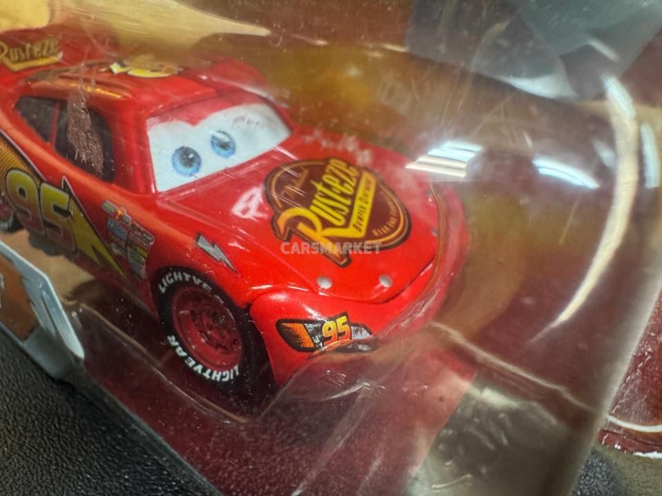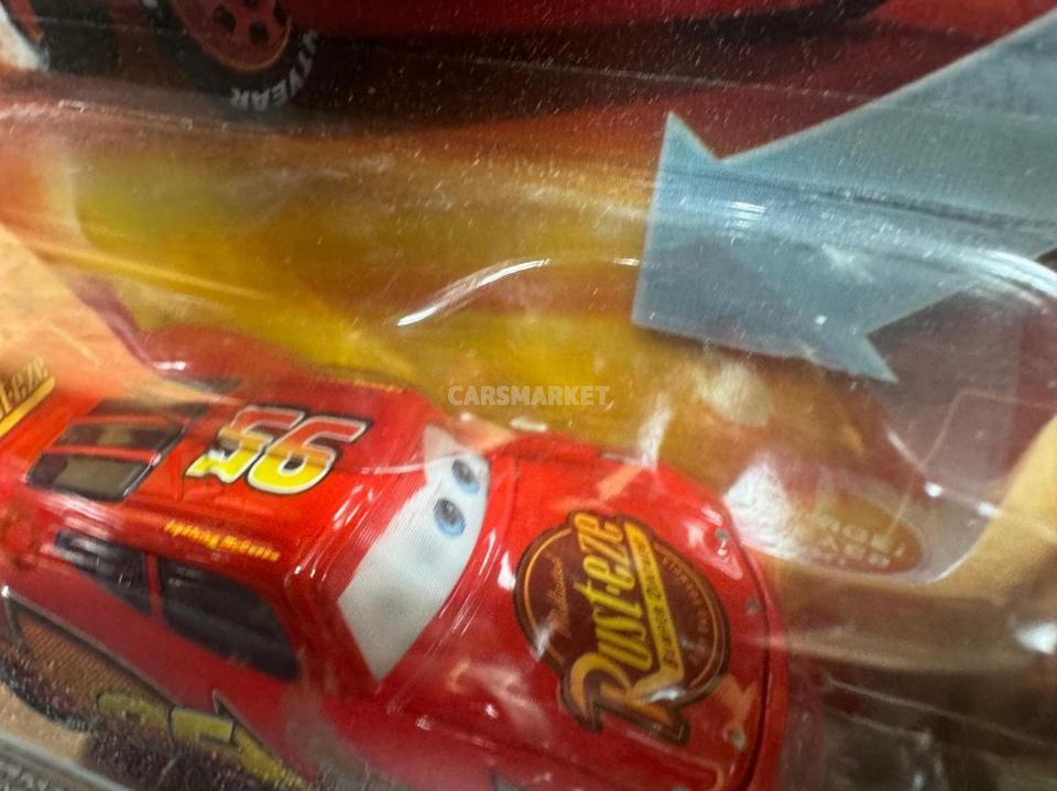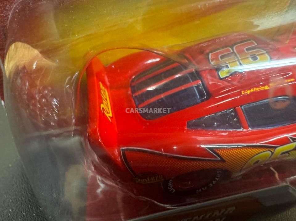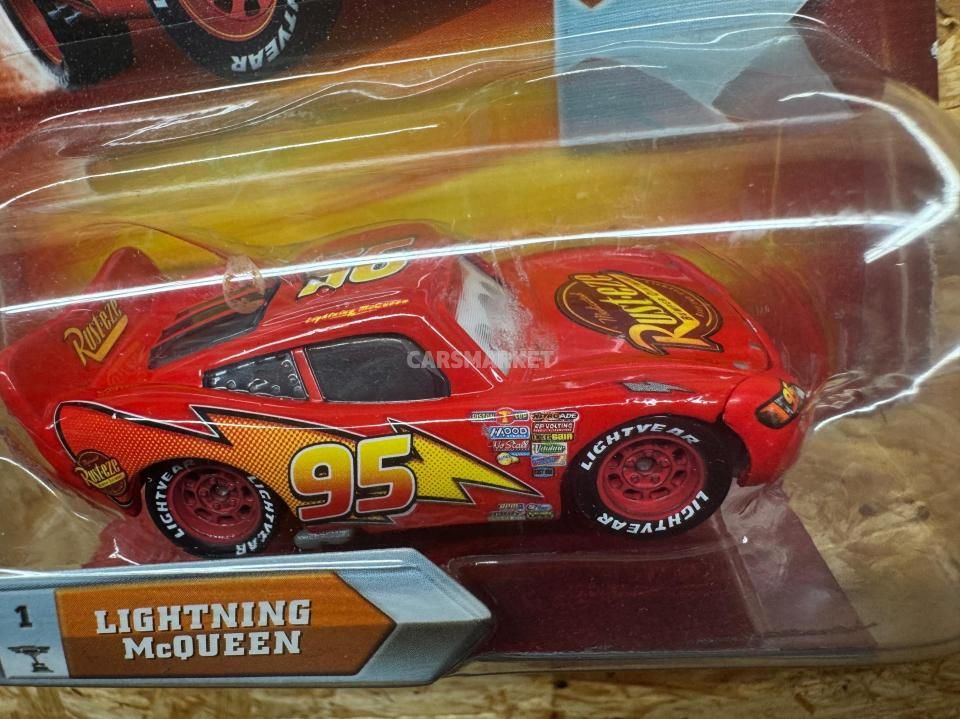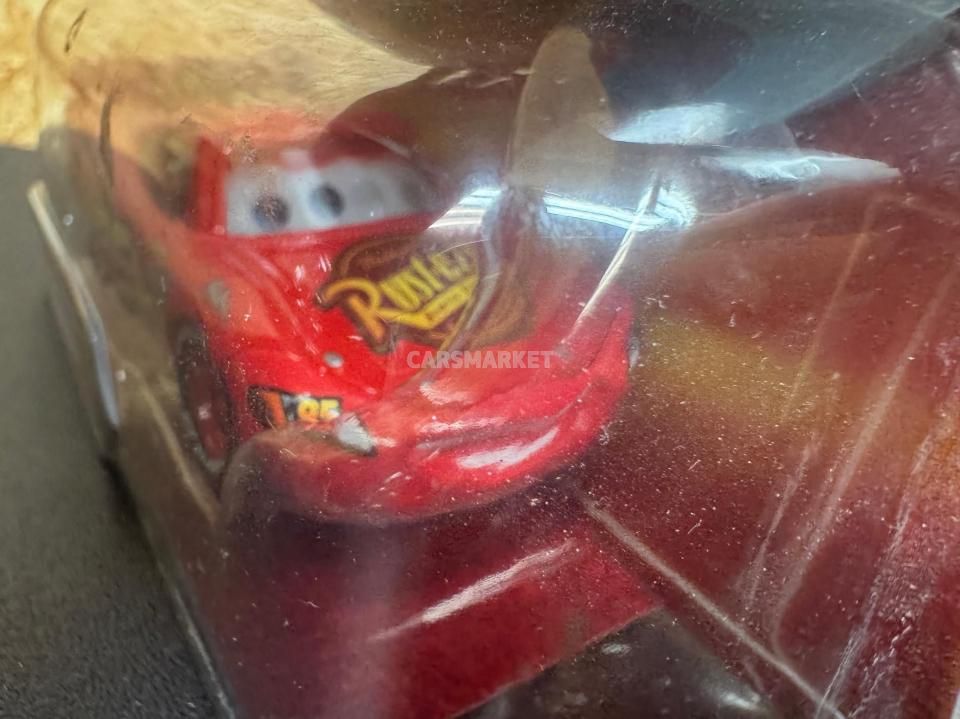 登場するのはライトニング・マックイーン。数え切れないほどのマックイーン・バリエーションの中でも、最もベーシックな “カーズ1仕様” の元祖マックイーンにあたります。「普通の」マックイーンながら、このモデルは目が動いて見えるレンチキュラー版